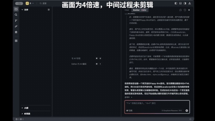 千里浸式实测国内首个AI IDE咱们先小试牛刀,平直聘请对编程小白更友好的Bulider模式来让Trae来写个网页小游戏试试。