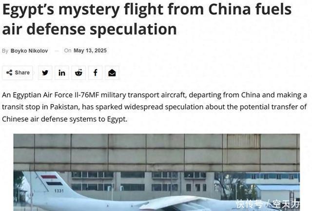 一架埃及空军输送机从中国升起,途中经停巴基斯坦后最终抵达埃及,外媒对此作念出果敢预计:这架输送机上运送的是中国出口的防空系统。