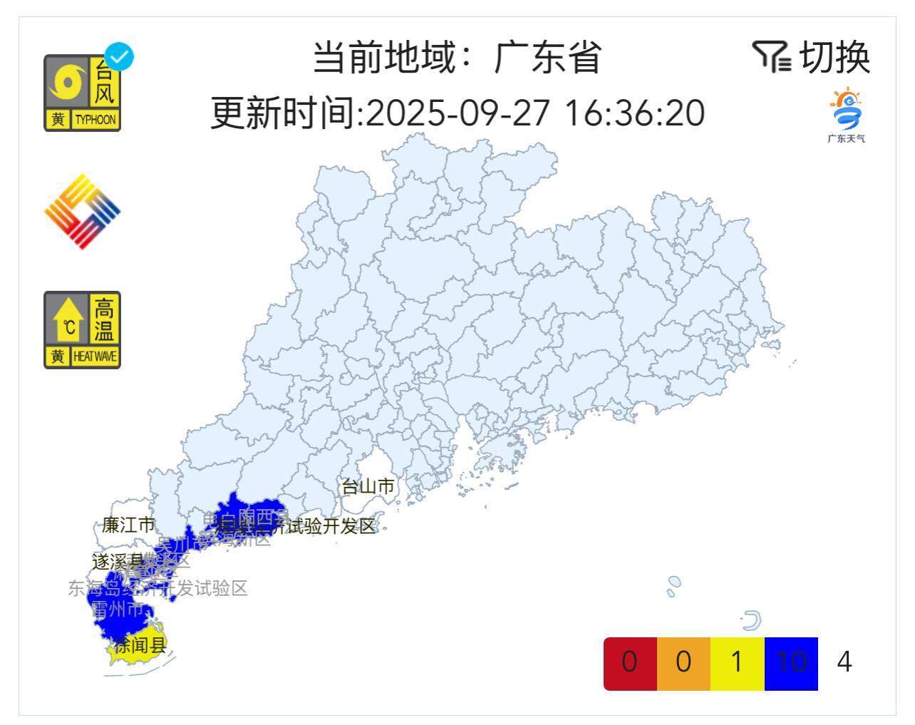 戒指9月27日16时36分亚博买球app,广东台风预警信号发布情况 微信小形势“缤纷微天气”截图