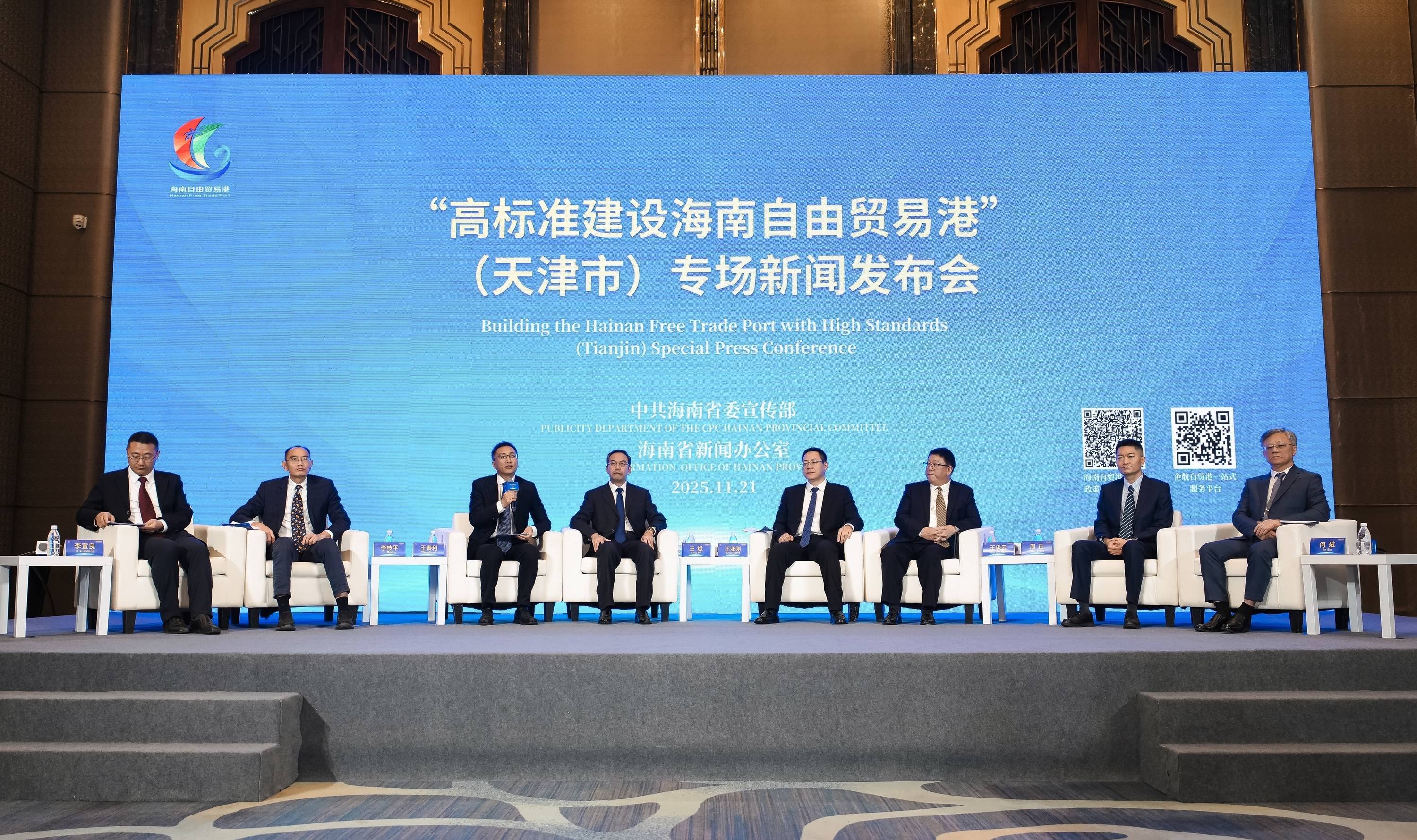 11月21日体育游戏app平台,“高圭臬竖立海南摆脱生意港”(天津市)专场新闻发布会在天津召开。新华社发